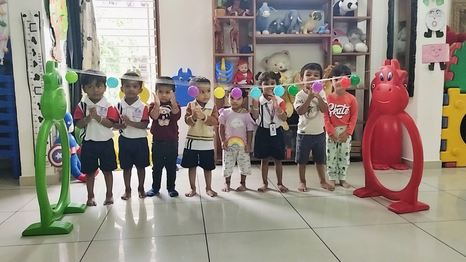 Theme of the Month: Every month a theme based concept like shapes, colors, fruits, vegetables etc. is executed for the children. The teachers also teach them about the same.